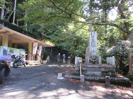 9:43九折の車道を経て西国三十三カ所三十一番札所 長命寺到着です。長命寺と刻まれた石柱は亀の甲羅の上に立っていました。 |