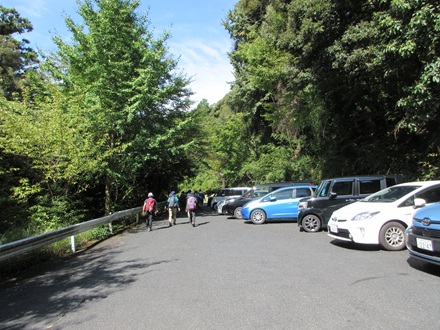 一旦石段を駐車場まで下り、登山口に向かいます。 |