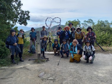 13:20百々神社前で一旦解散。右膝の調子の良くない野原以外は、予定通り鶴翼山を目指して出発しました。 |