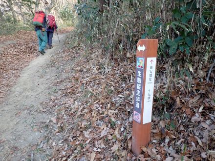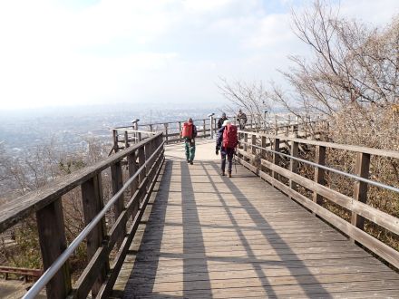 信貴山口駅からおおみちコースで約一時間のアルバイトで高安山の気象レーダーアンテナに到着し、十三峠を経て鐘の鳴る丘で昼食しました。幸せの鐘に願いを込めて、約束の鍵の多さに驚き鳴川峠まで起伏のさほどないよく整備された縦走路を歩きました。ぼくらの広場の鉄塔周辺は立ち入り禁止区域となっており、迂回して森のレストハウスで小休止後ぼくらの広場に登り大阪平野を一望の後、案内休憩所から枚岡駅を目指すつもりで下山しだしたのですが、枚岡山展望台から「らくらく登山道」に入り込んでしまい、枚岡駅ではなく瓢箪山駅に下山してしまいました。 |