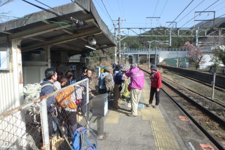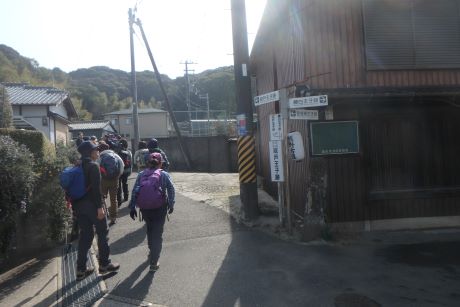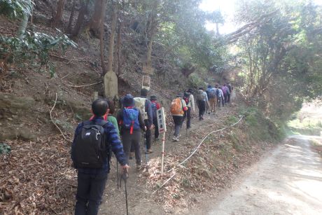 JR海南駅に集合。体験参加の人の自己紹介を受け10:40出発。あったかい日差し中、最初の祓戸王子へ。熊野古道の王子とは道中の安全祈願をする所で信仰の拠点であったと云われています。祓戸王子跡は熊野古道より少し外れた所にあり、たくさんの石仏が並んだ山道を10~15分登る。藪の中に寂しそうに祓戸王子跡の石碑が立っていた。もとの熊野古道に戻り、全国の鈴木姓の惣領とされている鈴木宅前を過ぎ藤白神社へ。南方熊楠ゆかりの大楠を見る。誠に大きな楠で何か霊的なものさえ感じる。ここには大楠が5本あるとの事。 「古来より生まれた子に、楠、藤、熊の名をつけると長命し出世すると言われ・・・世界的博物学者として高名な南方熊楠翁もその一人 」と藤白神社境内案内に書かれている。 本来窓越しでしか見れない三体の座像をボランテァの方の好意で目の前で見る事が出来た。およそ千年前の仏像との事であった。ここでランチタイムとする。 案内板に従って有馬皇子の墓へ。果樹園を過ぎ竹林の山道に入っていく。もっとも熊野古道らしさを残している所である。時代劇に出てくるような「すげ笠のふちに布を垂らした高貴な女性」が現れても、ちっとも不思議ではない。筆捨松、硯石をすぎ藤白塔下王子跡で休憩。ここから熊野古道第一の美景と云われている御所の芝へ。御所の芝からは海南の工業地帯と雑賀崎の海岸と思われる景観が見て取れる。工業地帯が少々興ざめだが近代化がされていない昔であれば、きっと素晴らしいものだったに違いない。ジグダクに下って冷水浦駅14:25着。誰もいない無人駅で解散としました。