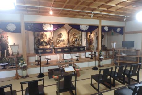 特別公開の熊野三山本地仏坐像右から本宮の阿弥陀如来・速玉の薬師如来・那智の千手観音菩薩 |