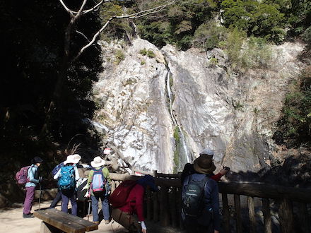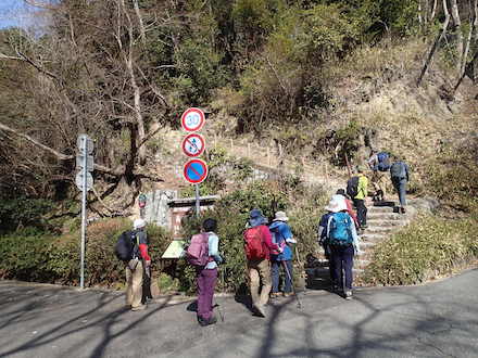 今回の例会は、JR神戸線や瀬戸内海のフェリーから見た神戸の夜景で他の都市 では見かけることの無い神戸市のシンボルマーク錨山、市章山をメインとして計画、その延 長線上に再度山をくっ付けました。 コースはJR元町駅から諏訪神社に向かい、長い石段を上って社殿の前を右折、遊歩道を辿ってビーナスブリッジの展望台へ。ひと昔前までは展望台の手すりには、永遠の恋を誓った恋人たちの掛けた数百個の南京錠で溢れていたらしい。現在は洒落た専用のモニュメントが設置されているが、そのような遊び心が廃れたのか今日掛かっていたのは10数個だけ。寂しい限りだが眼下に広がる展望は文句なしの一級品です。 ビーナスブリッジから一旦車道に下りて諏訪山、錨山、市章山へ向かう。三角点はないが神戸市街はもとより、遠くアベノハルカス等も見渡せる絶景が広がっていました。市章山からは車道を少々歩き堂徳山へ。堂徳山からは二本松を経て車道沿いの斜面に引かれた登山道をしばらく歩いていると「毎日登山発祥の碑」に到着する。その昔ここには「善助茶屋」というのがあって、最盛時には百冊を超える登山者名簿が置かれ大層賑わっていたそうですが第二次大戦後は訪れる人も減少し小屋は荒廃、取り壊されたとのこと。碑の横には四阿(東屋)が有り、この四阿を囲む木々をリスが駆け回りメンバー全員大騒ぎ。梅の木には花も咲いていました。西村さんによると駆け回っていたリスは「台湾リス」とのことです。 毎日登山の碑から数分歩くと大龍寺本殿に続く長い石段があります。石段を登り切った本殿でお参りの後、再度山(ふたたびさん)頂上へ向かう。「再度山」の地名は弘法大師が唐での修行を終えて帰国後、再びこの地を訪れたことから名付けられたということです。 再度山頂上での昼食後、再度越まで下降。ここからは過去10数回通った六甲全山縦走路を辿って大龍寺山門から市ケ原へ。私にとって「六甲全縦」は体力測定の意味もあって多い年は2回やっていました。市ケ原で小休止後、布引貯水池を経て名勝「布引の滝」前の展望台で「この滝を登るなら左の岩を・・」等の滝談義の花が咲く。その後、新神戸駅で解散しました。今日は天気も良く上々の登山日和でした。 |