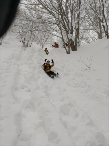 子どものように尻セードで下ります |