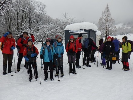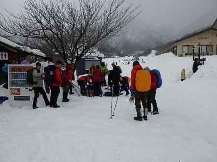 登山口は長蛇、積雪は130センチです |