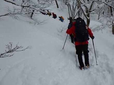 粟柄越へ急登を登る、入山者が多いのでしっかりトレースがありました |
