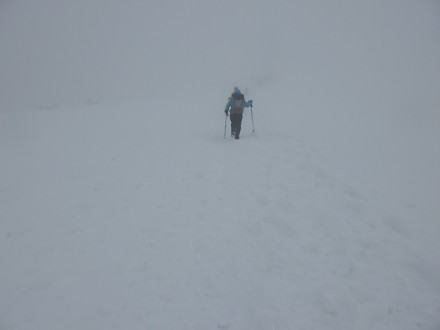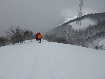 稜線は吹雪いていました、粟柄越までもう少しです |