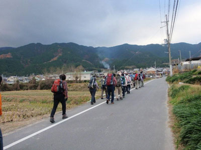 ![]() 布施城跡をあとにするあいかわらず長い隊列 |