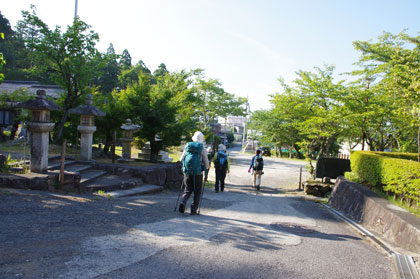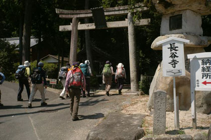 11:09 白坂を登る途中にある石灯篭下でめいめいがわずかな日陰を探して休憩 |