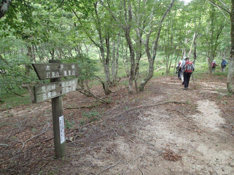 烏谷山の三角点を後にし、荒川峠へと下っていく。 |