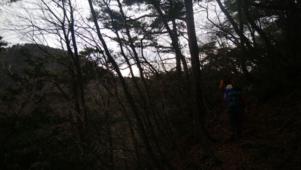 担当の板谷リーダーが急遽参加できなくなり、参加者4名の為、当初予定の小浜駅からのタクシーをやめ、上中駅で下車し敦賀から参加の村浪リーダーの車に乗り下山口に駐車。妙楽寺の登山口まで30分を歩いてのスタートとなりました。役行者にまつわる山らしく、足場の悪い箇所も多く各所にロープが張られ緊張の山行でしたが、360度展望がきく山頂に到着すると疲れも吹き飛びました。心配されてた降雨も下山時林道に出てからだったので、今年の締めくくりにふさわしいラッキーな山行でした。 |
