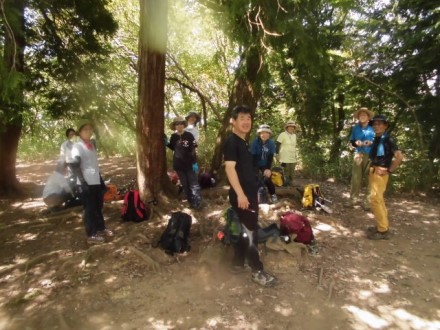 12:30竹ノ内峠で小休止 こまめに休息して水分補給します |