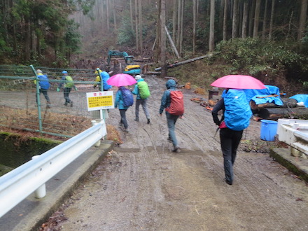 14:10 やっと雨が止みました、久留野峠に向かう登山口で解散する |