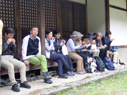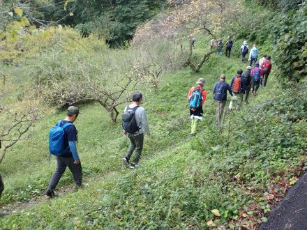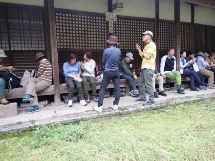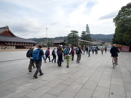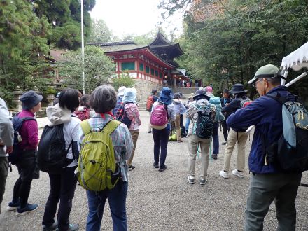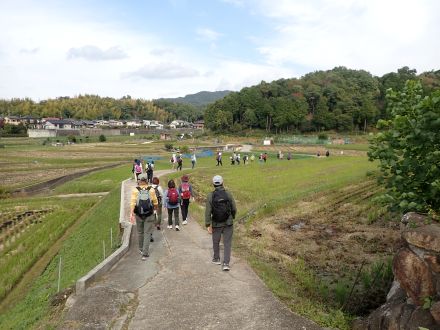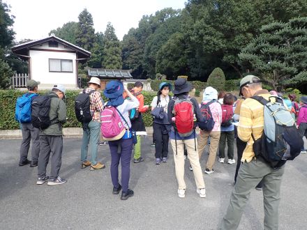 天理駅をスタートして天理教教会本部を左に見、石上神宮(いそのかみじんぐう)から布留の高橋を渡ります。ここは高橋氏名のゆかりの地だそうです。東に連なる青垣の麓を辿って北へ向かうこのコースには山あいに隠れるように点在する弘仁寺や円正寺など清らかな古寺神社が点在していました。奈良へ続くこの北コースは、桜井から天理の南コースに比べると知名度も低く歩いている人も少ないですが、のどかな風景と魅力的な史跡が残されているように思えました。 紅葉を期待していましたが時期が早かったようです。11月の後半には紅葉が見られるようですので、全行程を歩かずとも車などを利用すると弘仁寺や円正寺の古寺紅葉を見に行けると思います。 本日もたくさん参加いただき20㎞近くの完歩お疲れさまでした。