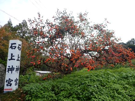 石上神宮(いそのかみ)前の柿がたわわになっていました |