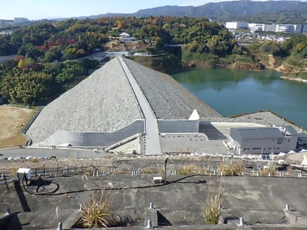 安威川ダム、洪水調節が主な目的で作られたロックフィルダム 50年以上かけて令和6年3月に完成したそうです |