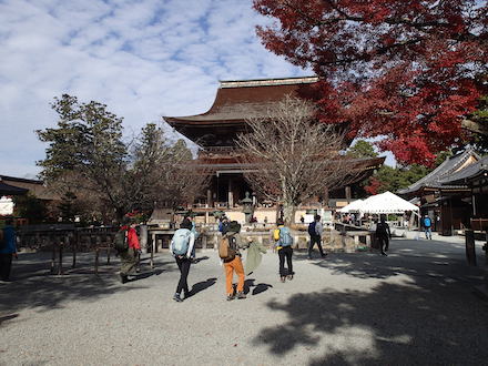 大峰道(奥駆け行者道)は、吉野から熊野まで180キロメートルあります。その内の吉野から青根ヶ峰までをほんの少し往復しました。工程の殆どは舗装道路で車の行き来が多くのんびり歩くことはできませんでした。 世界遺産になっている金峯山寺(きんぷせんじ)の国宝蔵王堂や吉野水分(みくまり)神社は、千年以上前に建造された木造建築です。今インパウドで多くの外国の方が日本に訪れていますが、日本ほど古い木造建築が残っている国はないと言われています、この古い建造物を目当てに多くの方が来られています。 この日は天気もよく温かい日和でした。われわれも世界遺産を堪能しながら順調に工程を進め折り返し点、青根ヶ峰まで進めることが出来ました。 吉野と言えばは桜ですが、私がまだ高校生のころ吉野の宿坊桜本坊で、桜の咲き始めから満開まで一週間合宿しました。その桜本坊の前を通りがかったのですが、記憶は全く合致しませんでした。そんな遠い記憶の彼方の吉野でしたが、楽しい山行でした。参加された皆様、お疲れ様でした。
