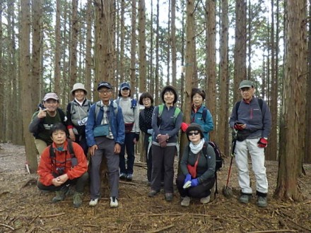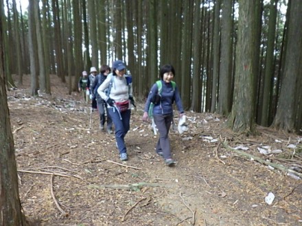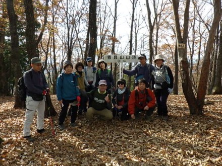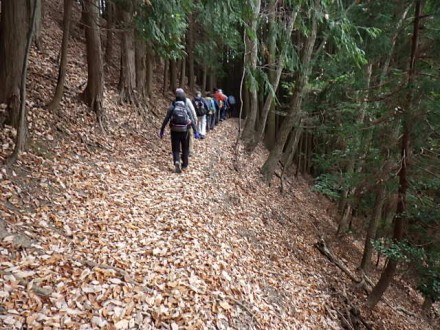 阪急池田からバスに乗って、平野バス停で降りた。山あいの田んぼが続くバス停からスタートした。 杉林と道路を歩いて法輪寺で休憩をした。そこから少し行って農作業してる人に会ったので、「この辺 は熊が出ますか?」と聞いたら、時々出るよと言われてビックリ、緊張感を持って登る。 1時間程で天台山山頂に着いた。杉林で展望が効かない。先ほど登りで汗をかいたが、休憩をすると 直ぐに寒くなり上着を着た。ここからは下って行くと杉林から落葉樹に変わってきて、北摂の山々が見 わたせた。落葉した絨毯の道を、サクサクと音を立てながら登った。 青貝山に着く。山頂は展望が良く、ゆっくりと昼食をとった。そこからはなだらかな下り道を行くと 住宅街の横の吉川峠に出た。脇道ののどかな里道を下ると妙見口駅に着いた。 北摂の山へ来ることはあんまりないが、天気に恵まれ、静かでのんびりとした山行が出来た。 |