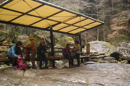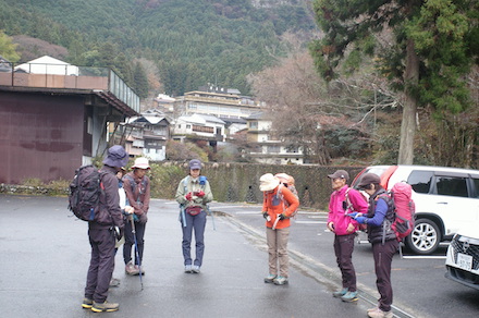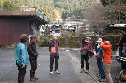 9:00 赤目渓谷手前の駐車場前にて出発の挨拶 |