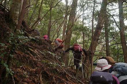 赤目四十八滝に入るには千円の入場料が必要です。 入場料を払って水槽のサンショウオに見送られて出発します。 道は綺麗に整備され殆ど人とも会わず9時半ごろ出発して11時ごろには、最終の巌窟滝に着いてしまいました。 赤目四十八滝は、観光地だったのです。 大昔中学生のころ、ここに友達三人で冬に来た事あるのです。どうしてそれを覚えているかと言うと帰る途中に池があり、そこが凍っていて始めは石を投げたりして遊んでいたのですが、だんだん大胆になり凍った池の上に乗って遊んだ記憶があります。後から考えるともし氷が割れて池中に落ちたらと思って怖くなった記憶が鮮明に残っているからです。 そんな思い出のある赤目四十八滝だったので、山行に選んだのが間違いでした。 でも帰りは、長坂山を回って来ましたので何とか山行の格好はつきました。 行かれたことのない方は、紅葉シーズンに孫と一緒に行ってみてください。 |