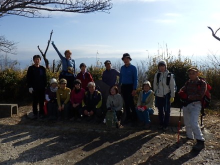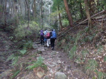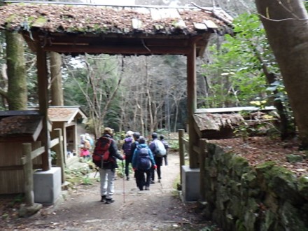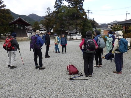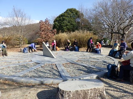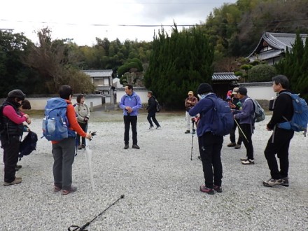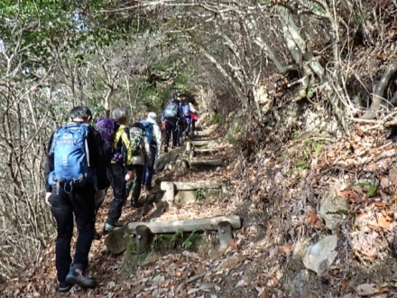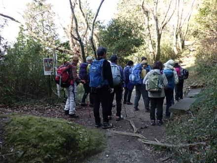12月21日(日)の例会予定日が雨天のため予備日である12月28日(日)に延期し実施しました。 当日は肌寒いながらも晴天に恵まれ、当麻寺駅(9:00)から當麻寺、鳥谷口古墳を横目にのんびりと車道の終点まで歩くと馬の背と岩屋峠への分岐に建つ祐泉寺着。ここで休憩し、いつもなら「トトロの道」や「大岩コース」である馬の背コース側ではなく、左側の岩屋峠コースを辿りました。小さな沢沿いの静かな森の中をしばらく登ると岩屋峠着(10:00)。ここからコンクリート製の展望台前をとおる馬の背経由コースと、峠からそのまま雌岳へ直登するコースに分かれます。我々は直登コースを登り雌岳頂上着。大きな日時計を取り巻いている石のベンチに各々腰掛けポカポカ陽気の中、のんびりと昼食を摂りました。雌岳からは金剛、葛城山の頂、そして遠く奈良盆地や大阪市内を眺めることができました。石の日時計は十時半頃に時の影をおとしていました。 その後、雄岳と雌岳の間にある馬の背を経由して、祐泉寺に向け下りました。青々とした植林の中、葉を落としてしまった銀杏の大木を眺めながら細い渓流沿に下ると祐泉寺着(11:50)。再度休憩し、その後釣り堀横をとおりすぎると、カモと鯉のいる大きな池越しに奈良盆地を眺めることができる清々しい池端を歩き當麻寺着(12:30)。ここで解散としました。 年の瀬が迫った今年最後の例会でしたが、12名もの参加者があり嬉しい限りです。当初、サブリーダーには参加者がなかったら二人で二上山を大阪側に越えようかと話していました。 一年間、EPE会員の方々と共に山に登れて感謝です。お疲れさまでした。 |