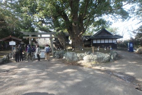 11:40藤白神社到着 子守楠神社の大きな楠木が迎えてくれる |
