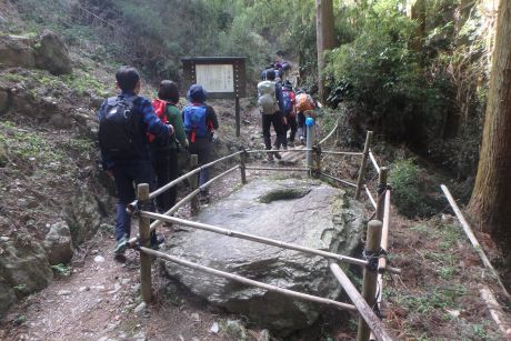 硯石、ここからの道は石や岩がゴロゴロしているところもあり当時の面影を残している |