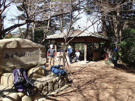 10:50 毎日登山発祥の地 石碑のある善助茶屋跡で小休憩 |