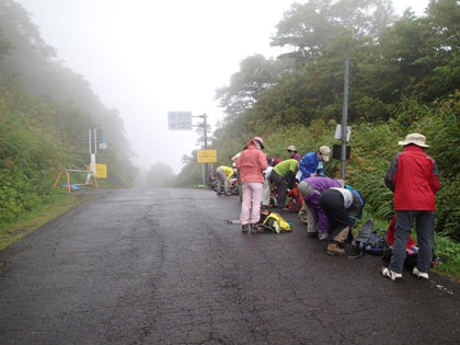 9/6 8:45 温見峠(ぬくみとうげ)に着き小雨の中で出発準備。 |