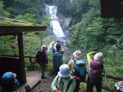 無事大杉谷を通過し終えました、堂倉滝をバックに記念撮影です |