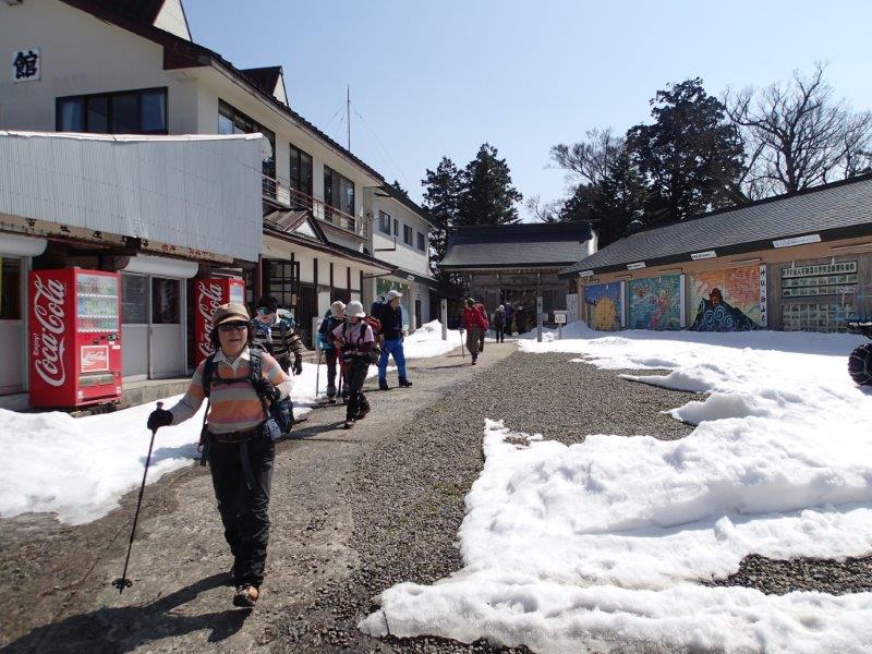13:40 雪があっても下りは早い。1ピッチ半ほどで成就社まで戻って来た。 |