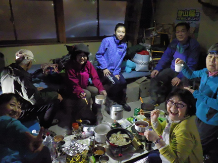 10/24 10時に難波集合でマイカー3台に分乗して今日は天生峠までです、天気は上々です、東海北陸道に入りしばらく走ると雨模様です。白川郷ICを降りる頃には結構降っています、予定していたスーパーマーケットが午後から閉店で仕方なく唯一のコンビニで夕食を調達して峠着、雨はみぞれに変わり雪となってきました。テント設営は断念して管理員の許可を得て登山口休憩所で宿泊することとしました。 10/25 昨日の雪も昨夜10時頃にはやんでいました、車の屋根には雪が積もっています。6:30入山手続きを済ませ出発、気温は0度です、7:10天生湿原着、積雪は5cm程度、紅葉と積雪と上部の稜線は樹氷が見られ絶妙な景色です。今日は私たちが最初のパーティーで雪の道にはふみ跡はありません、カラ谷分岐でコースは3方向に分かれます、今日は東側の木平探勝路を辿り籾糠山往復後カラ谷登山道を下山する予定です。高度を増すとなかなかの積雪で木々が雪の重みで登山道を遮っています、籾糠山に9:40着、積雪は10cm程度でした。この季節紅葉を求めて多くの登山者が見られるようで、今日も予想外の積雪ですが、多くの登山者が見られました、12時過ぎ登山口に到着、白川郷の湯で入浴し帰阪しました。 |