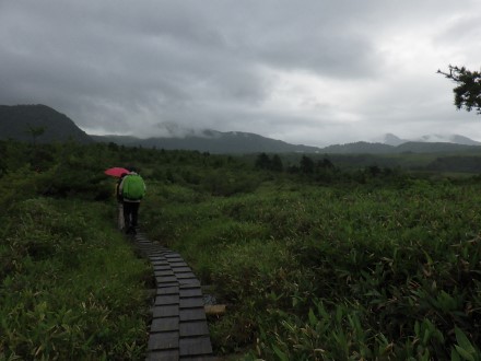 12:30 標高2,400m付近、雨が降り出しましたので小屋へ下山決定 |