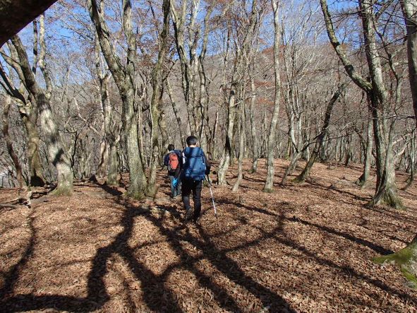 「カシャカシャ」と落ち葉を踏みしめてT字尾根を登った。 |