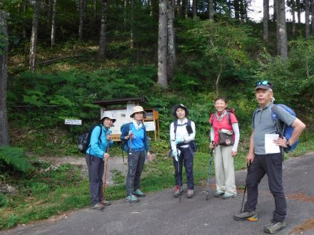 9月8日 8:07経ヶ岳登山口でルートを確認 |