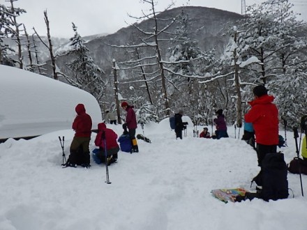 登山口は長蛇、積雪は130センチです |